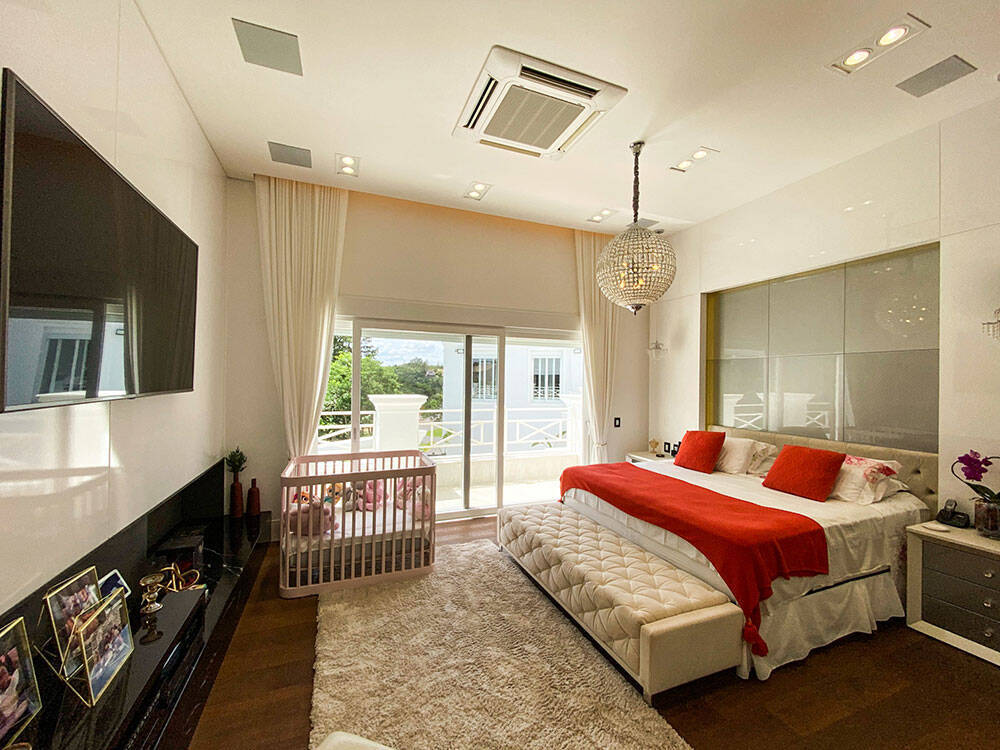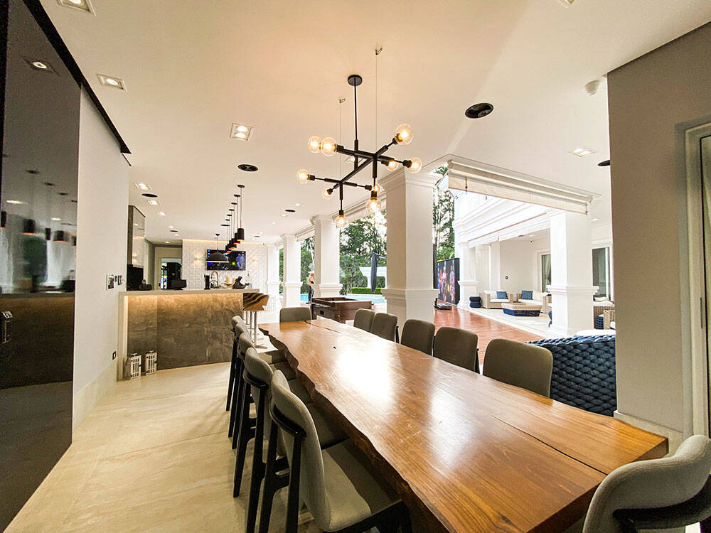 Conforto e Privacidade Supremos: A mansão abriga 7 quartos luxuosos, incluindo 5 suítes charmosas e uma suíte master magnífica, cada uma oferecendo o máximo em conforto e privacidade. Um dormitório adicional assegura espaço de sobra para hospedar convidados com graciosidade e distinção.