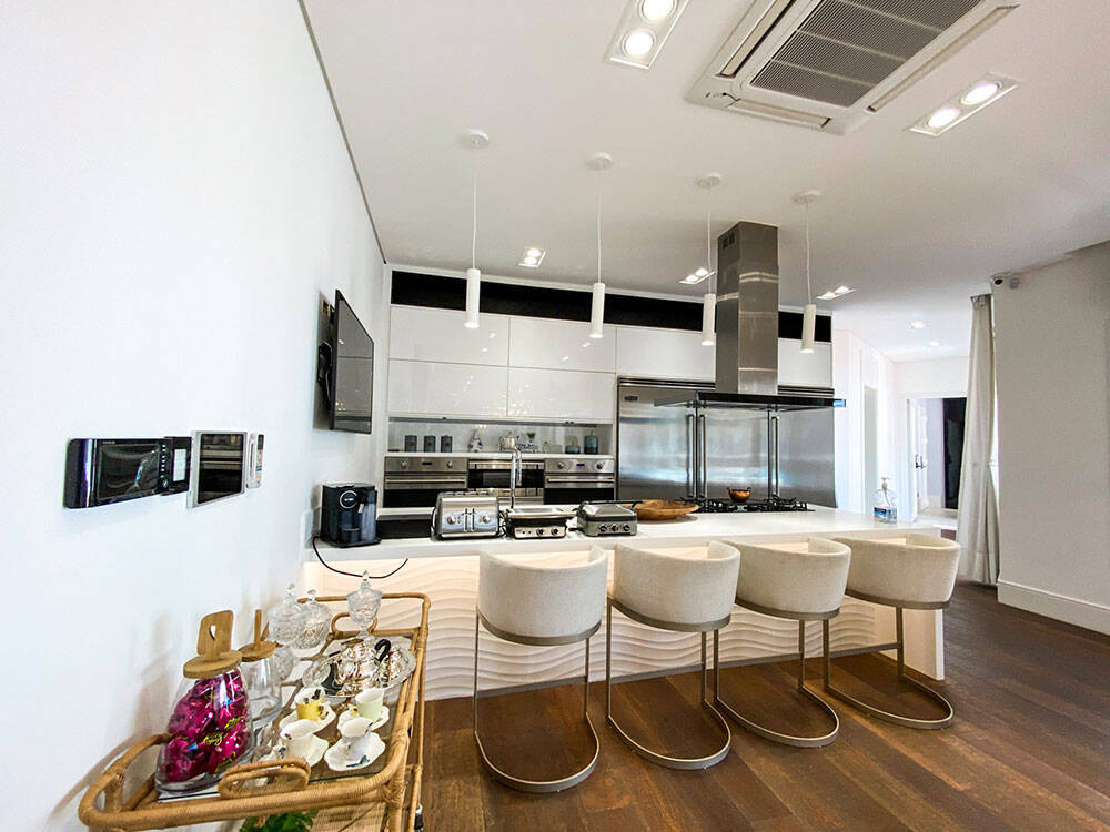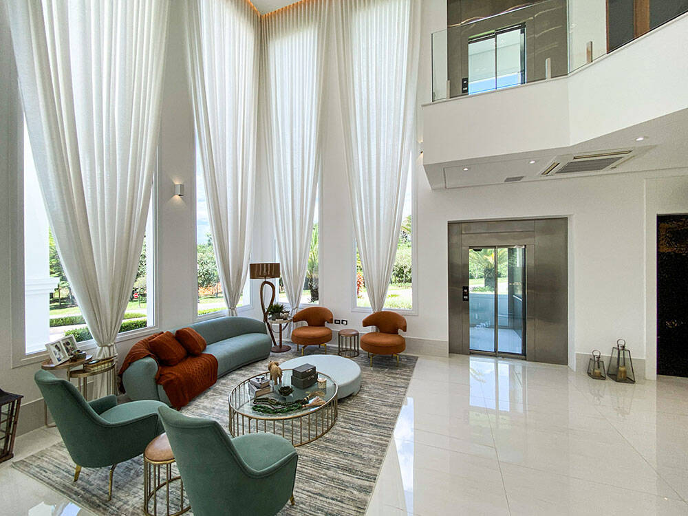 Facilidades Excepcionais: O elevador panorâmico oferece um passeio visualmente encantador pelos níveis da mansão, enquanto a adega climatizada é um santuário para os connoisseurs de vinho, enriquecendo a experiência residencial.