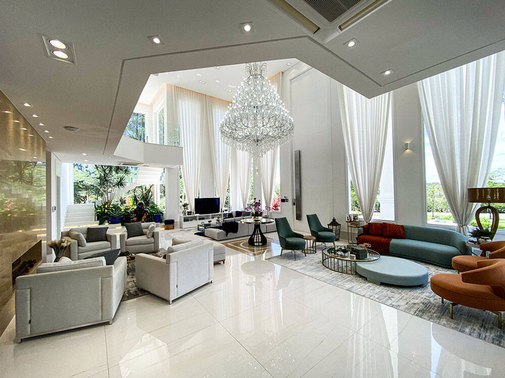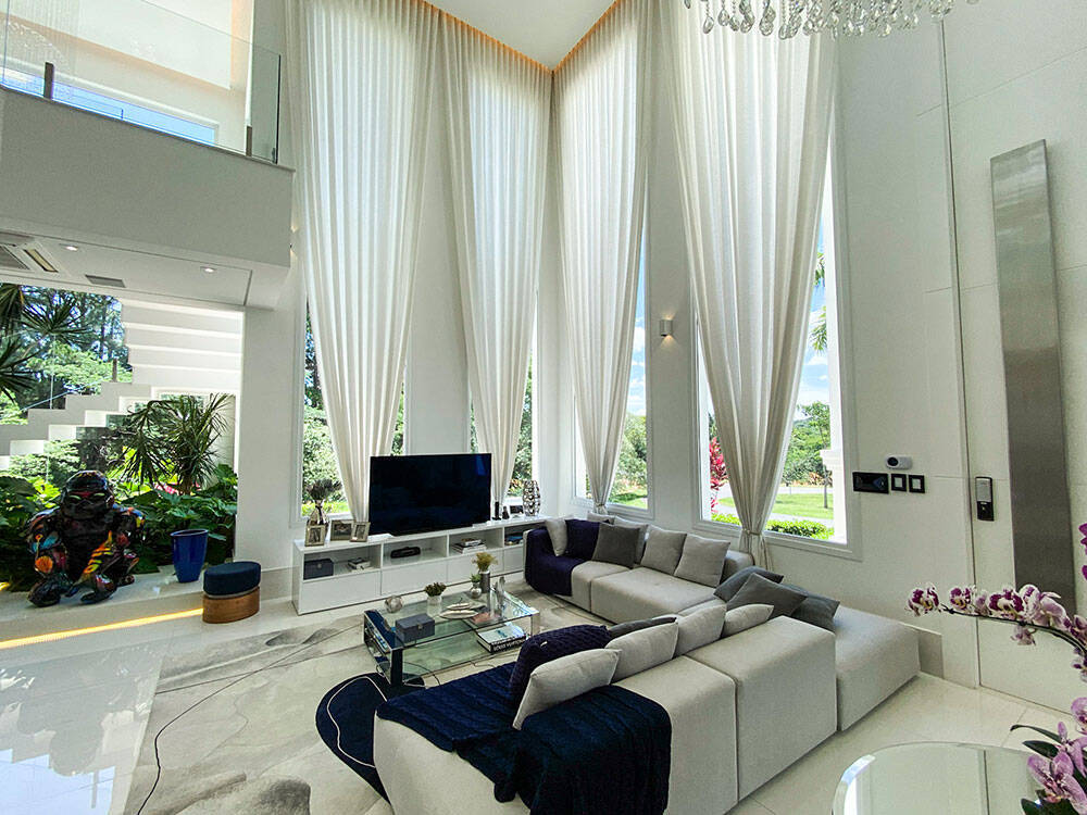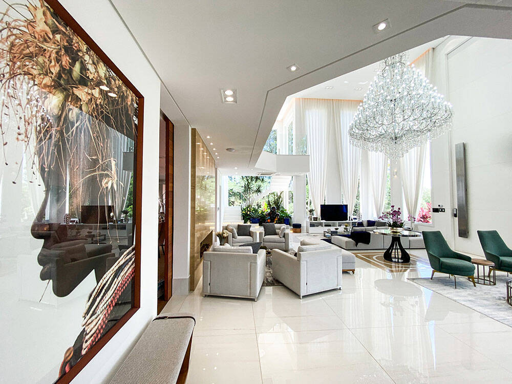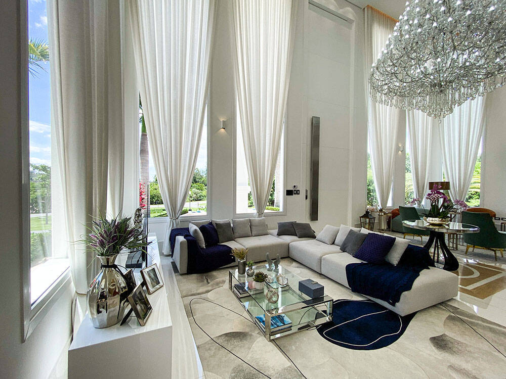 Interiores Deslumbrantes: Ao entrar, as 3 salas de estar elegantemente decoradas cativam os sentidos, cada uma proporcionando um cenário distinto para entretenimento e descanso. O escritório refinado é um santuário de produtividade, combinando funcionalidade com sofisticação.