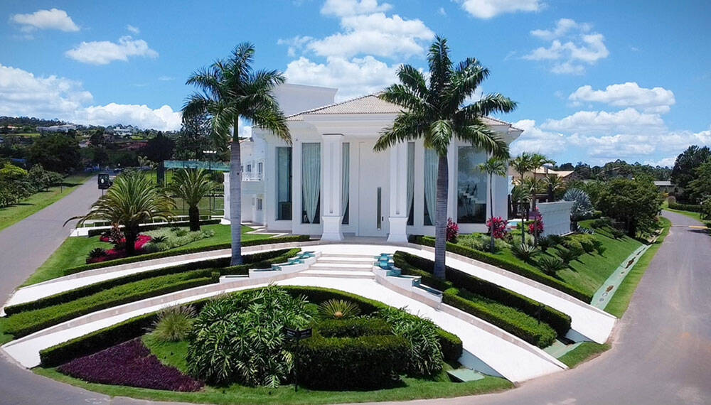 Espaço e Elegância em Abundância: Erguida sobre um terreno vasto de 6.732,22m², a propriedade impressiona com 1.600m² de construção majestosa e pé direito elevado, criando um ambiente de puro esplendor e amplitude.