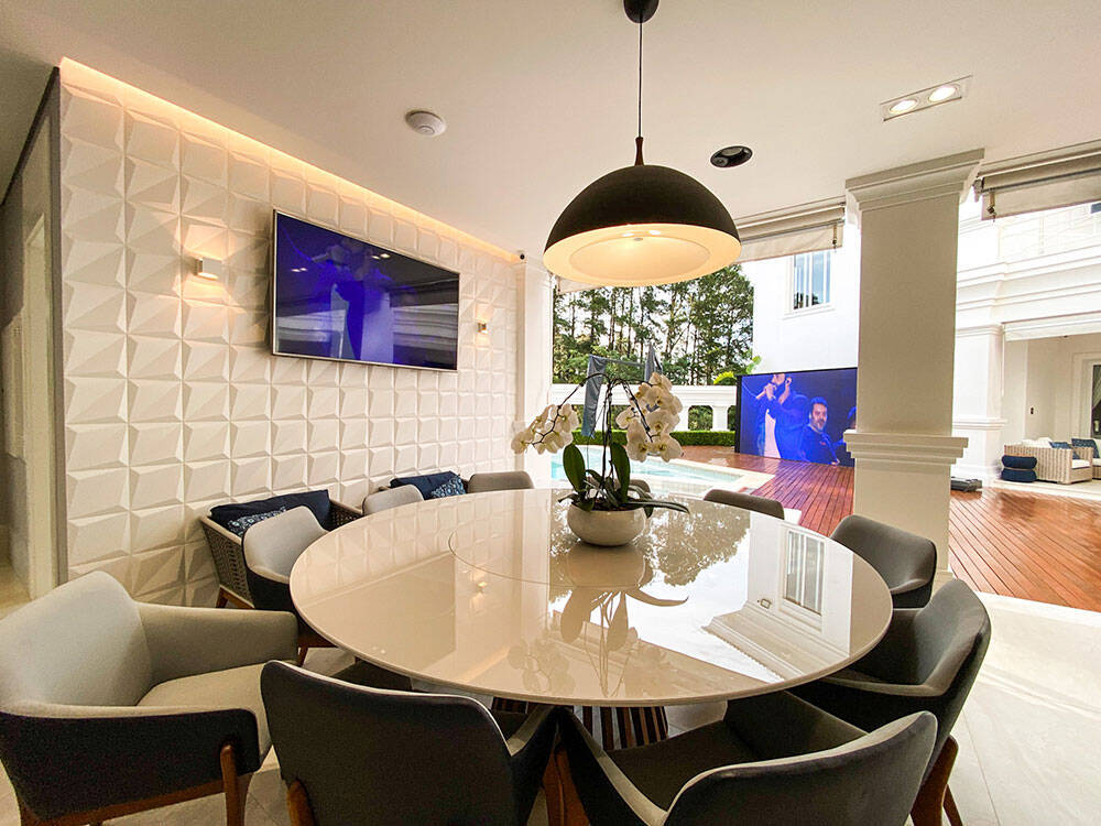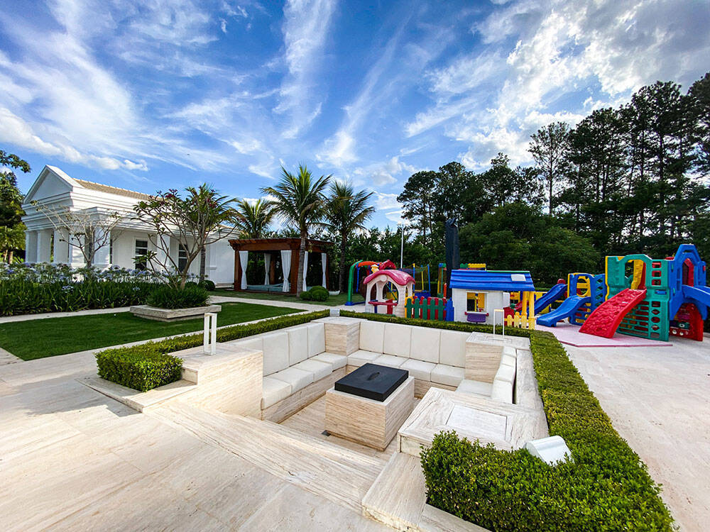 Oásis de Lazer Privativo: A área externa é um paraíso de lazer privado, completo com piscina aquecida, academia moderna, playground infantil e até uma capela íntima, garantindo momentos de paz e diversão para todos. A lareira estratégica adiciona um toque de calor e requinte ao ambiente.