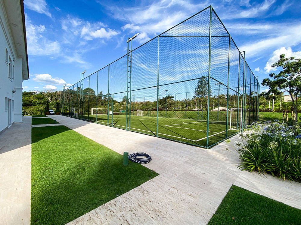 Instalações Esportivas e Garagem Expansiva: Complementando as amenidades, uma quadra poliesportiva aguarda os entusiastas do esporte, e a garagem ampla — com capacidade para 3 veículos cobertos e 8 descobertos — oferece potencial para expansão, ideal para colecionadores de automóveis.